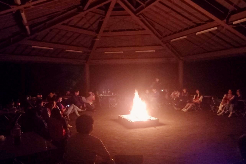 の3名で、初日に講義やグループディスカッションを行うとともに、アクティビティ(スラックライン)やバーベキュー、キャンプファイヤーなどで交流し、翌日には奉仕活動やグループワークを行ったあと、各グループで課題発表が行われて表彰式が行われました。