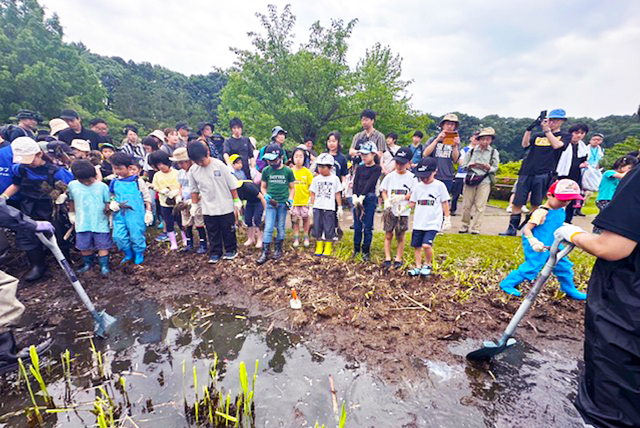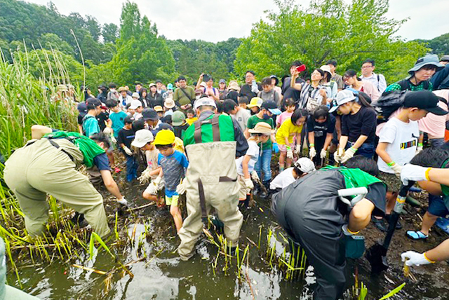 千波湖にてビオトープのメンテナンス、併せて外来種駆除、子供ムシムシ探検隊の実施。