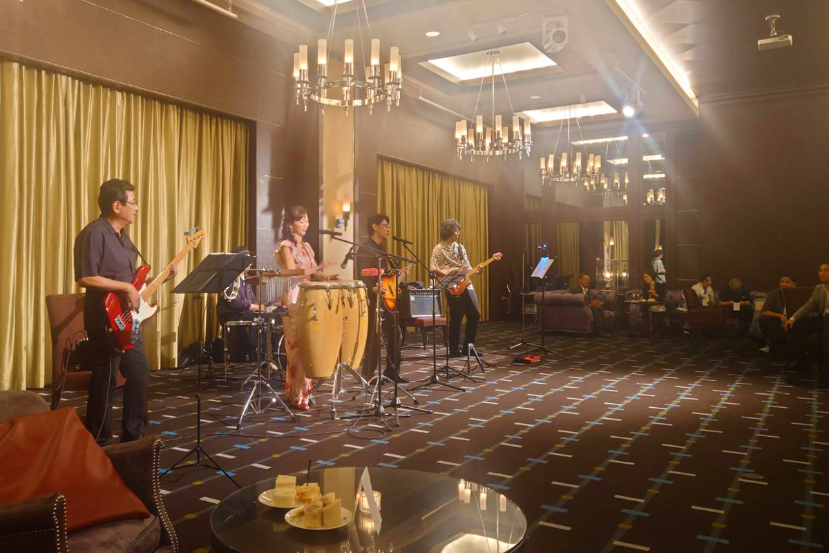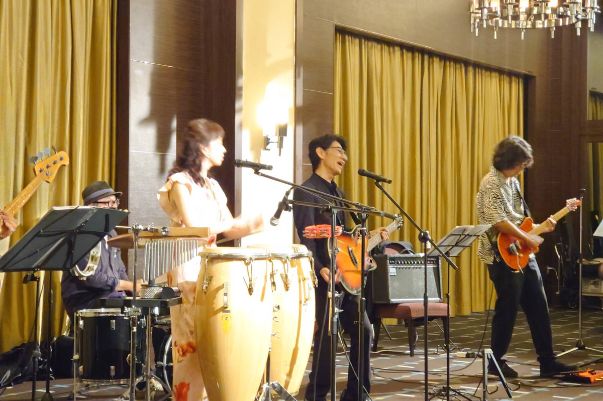 「もっと気軽な懇親会を」との声を受け、今回は米米CLUBのコーラス兼パーカッション・MARIさんをお招きし、音楽とお酒を楽しむパーティースタイルで企画。
